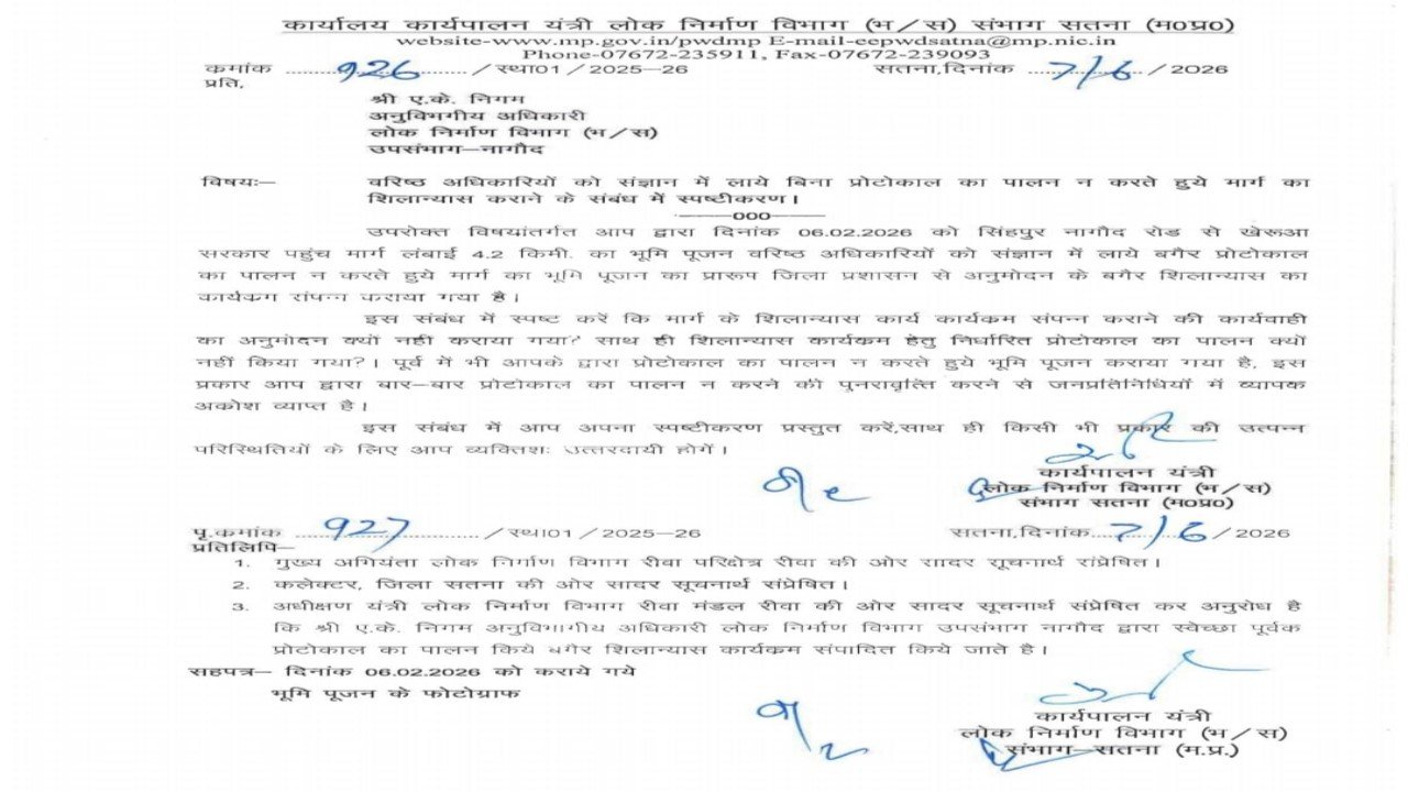 PWD के प्रभारी एसडीओ अश्वनी निगम को शोकॉज नोटिस